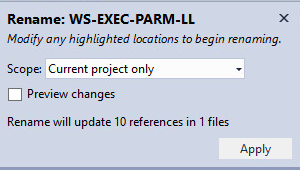 - It is only possible to rename identifiers that are defined in the COBOL projects within the current solution.