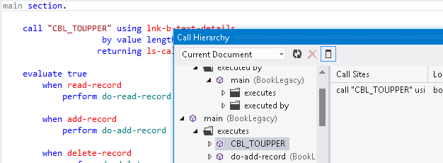 Go To Next Method, in the COBOL toolbar to navigate easier in native Object-Oriented and .NET COBOL code. Alternatively, use the